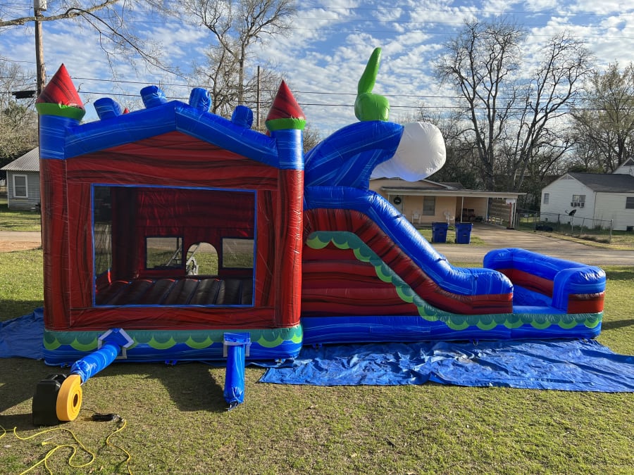This is a red wave dual lane slide combo and a pool at the end. Perfect for little ones. Can be used wet or dry.
